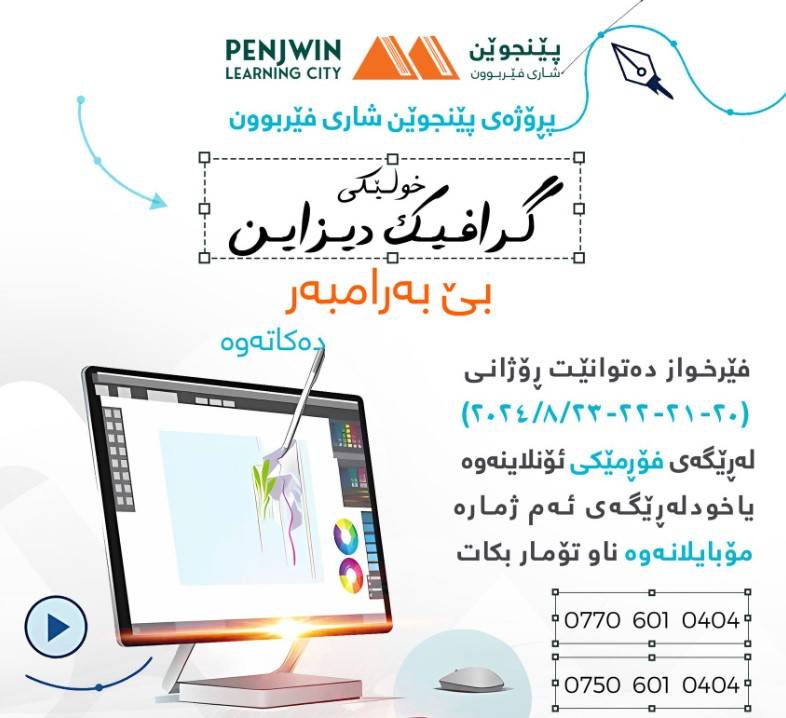پڕۆژەی پێنجوێن شاری فێربوون خولێکی فێربوونی (گرافیک دیزاین) بێ بەرامبەر دەکاتەوە بۆ