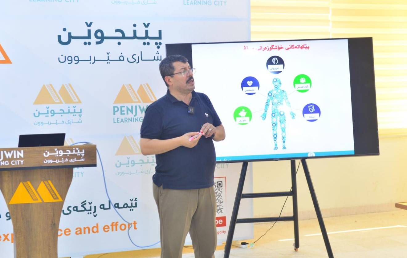 بەرواری ٢١-٨-٢٠٢٤ سیمینارێک لەژێر ناونیشانی (چۆن ببینە کەسێکی بەرهەمدار لە کۆمەڵگەدا) تایبەت بە فێرخوازانی خولی فێربوونی (دەف و جواننوسی) لە لایەن (پ.ی.د.عبدالفتاح هەورامی)ەوە پێشکەشکرا. لەم سیمینارەدا باس لە هەنگاو و قۆناغە جیاوازەکانی گەشە و پەرەپێدان و بەرپرسیارێتی تاککرا لە ژیانی خۆی و پاشان کاریگەری لەناوکۆمەڵگەدا.. لەمیانی سیمینارەکەدا منداڵێکی ژیکەڵە بە بەشداری و ووتە جوانەکانی سەرنجی ئامادەبووانی بەلایخۆیدا ڕاکێشاو، بەو هۆیەشەوە لەلایەن پڕۆژەی پێنجوێن شاری فێربوونەوە وەک هاندانێک خەڵاتێکی پێشکەشکرا..