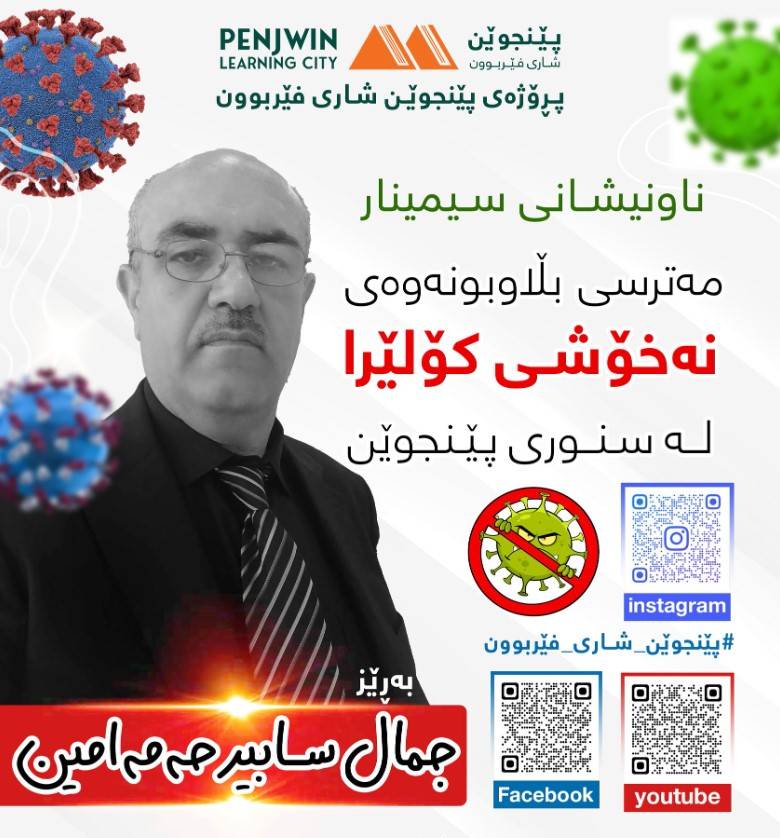 لە دوای بڵاوبونەوەی نەخۆشی کۆلێراو هاوکات هەستکردن بە مەترسی و لێکەوتەکانی لەسەر ژیانی هاوڵاتیانی شارۆچکەی پێنجوێن پڕۆژەی #پێنجوێن_شاری_فێربوونهەڵدەستێت بە سازدانی سیمینارێک لەژێر ناونیشانی(مەترسی بڵاوبونەوەی نەخۆشی کۆلێرا لە سنوری پێنجوێن) بۆ بەڕێز (جمال سابیر حمەأمین) بەمەبەستی خستنەڕووی ئاستی زیانەکانی نەخۆشیەکە و ڕێگاکانی خۆپاراستن و ڕێگریکردن لەبڵاوبوونەوەی.ڕۆژ: یەکشەممەبەروار : ١-٩-٢٠٢٤کات: (٢)ی پاشنیوەڕۆشوێن : کتێبخانەی گشتی پێنجوێن - نهۆمی دووەم.