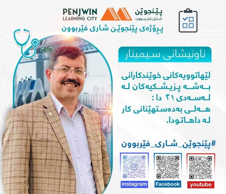سیمیناری (زیرەکی سۆزداری و نهێنی سەرکەوتن لە کەرتی تەندروستیدا) تێبینی: تایبەتە بە کارمەندانی کەرتی تەندروستی. کات : ٢:٠٠ی پاش نیوەڕۆ گەنجانی پێنجوێن